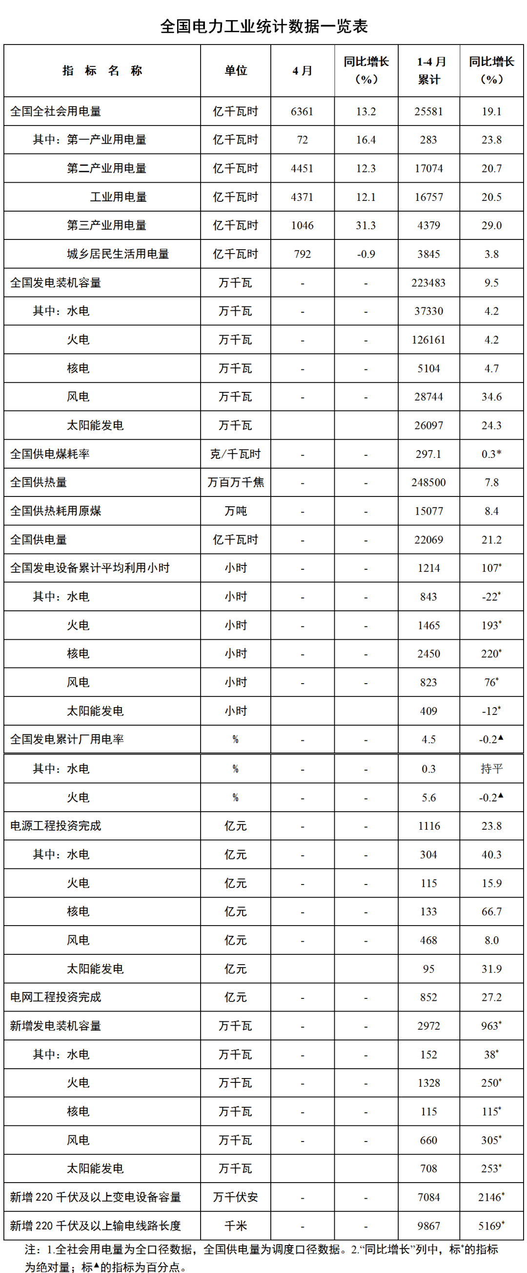 國家能源局發布1-4月份全國電力工業統計數據