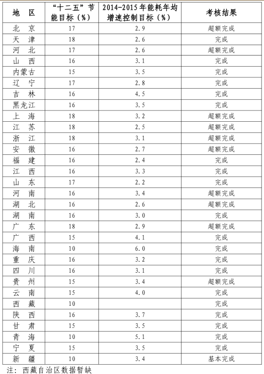 “十二五”各省節能目標完成情況公告