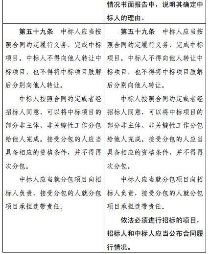 二、第五十九條增加一款,作為第四款:“依法必須進(jìn)行招標(biāo)的項目,招標(biāo)人和中標(biāo)人應(yīng)當(dāng)公布合同履行情況。”