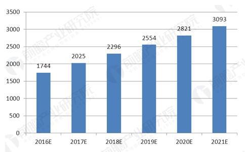 2016-2021年中國合同能源管理行業(yè)投資規(guī)模預測圖(單位:億元)
