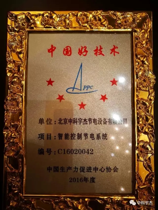 熱烈祝賀“中科宇杰智能控制節(jié)電系統(tǒng)”榮獲2016年度中國(guó)好技術(shù)殊榮