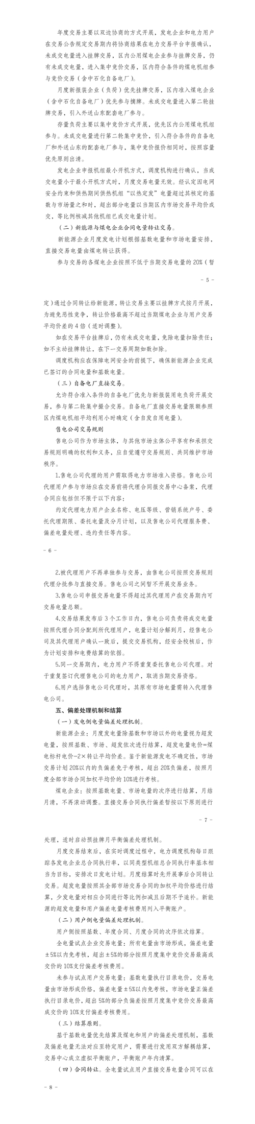 煤電企業(yè):超發(fā)電量按照其全部市場交易合同的加權(quán)平均價格進(jìn)行結(jié)算,少發(fā)電量對相應(yīng)合同進(jìn)行等比例扣減且后期不予追補(bǔ)。