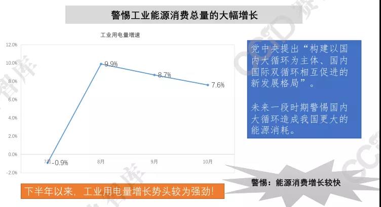 2020年,我國工業(yè)能源消費(fèi)呈現(xiàn)"前低后高"走勢,8、 9、10月份工業(yè)用電量增速均超過5%,處于近年來較高水平。