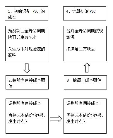 初始PSC代表了傳統(tǒng)采購模式下政府生產(chǎn)和交付參考項目的基本成本。初始PSC的計算是一個復雜而嚴謹?shù)倪^程,需要對所成本進行界定和分類,預計可能發(fā)生的時間和數(shù)額,再進行全面的整理和歸納,最后實現(xiàn)凈現(xiàn)值的計算。